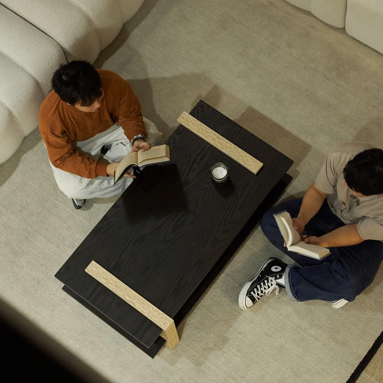 茶几拥有双层开放式置物空间,桌腿与台面穿插,边缘刚好留下可以放置香薰蜡烛的小空间,也可放置其他喜欢的装饰小物,让客厅拥有满满氛围感。