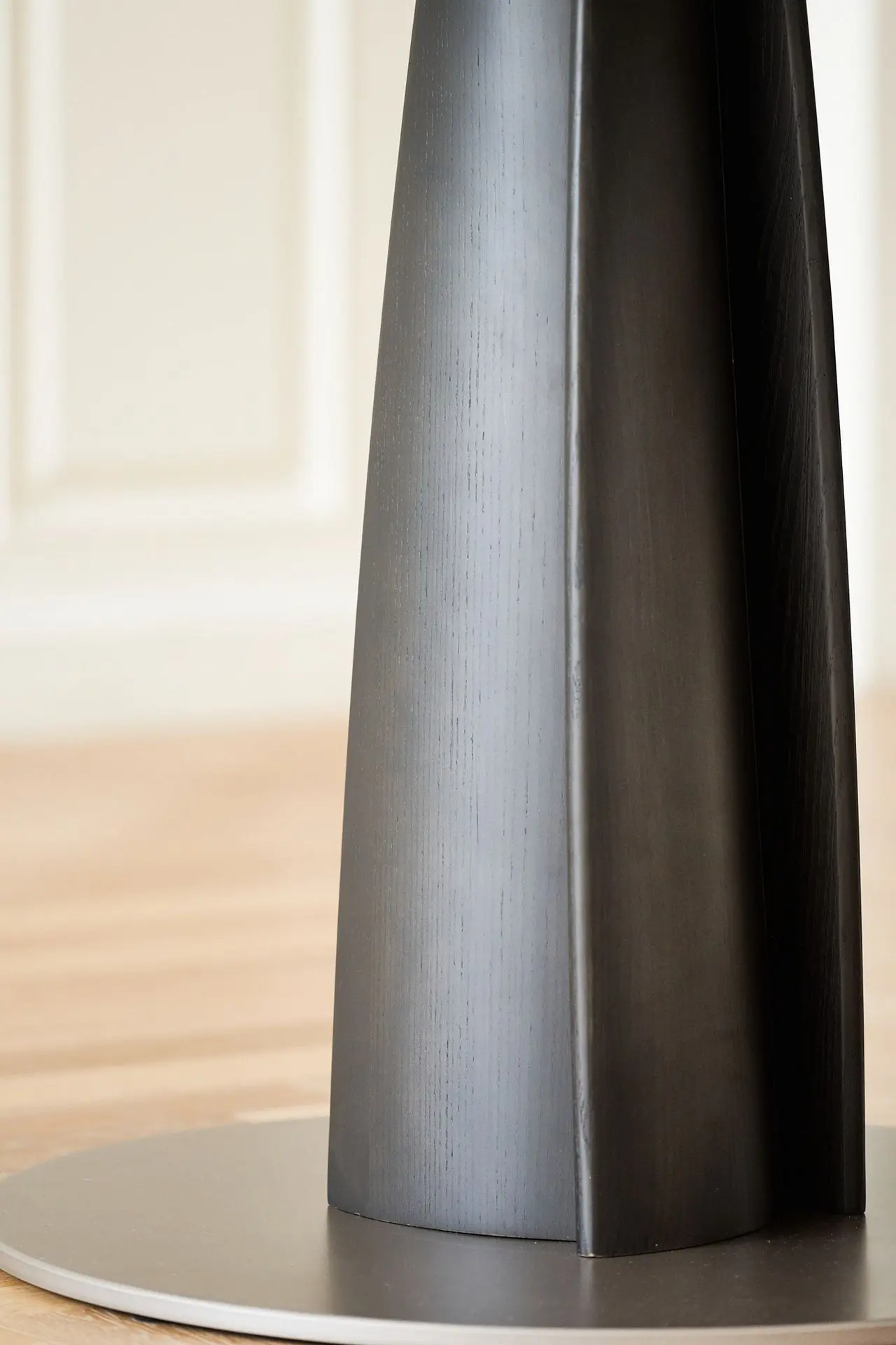 玲珑小圆桌桌腿桌腿由四片带有三维弧度的实木体块交错拼合,上小下大的塔型设计使其视觉重心更为平衡,具有优雅灵动的动态美感。