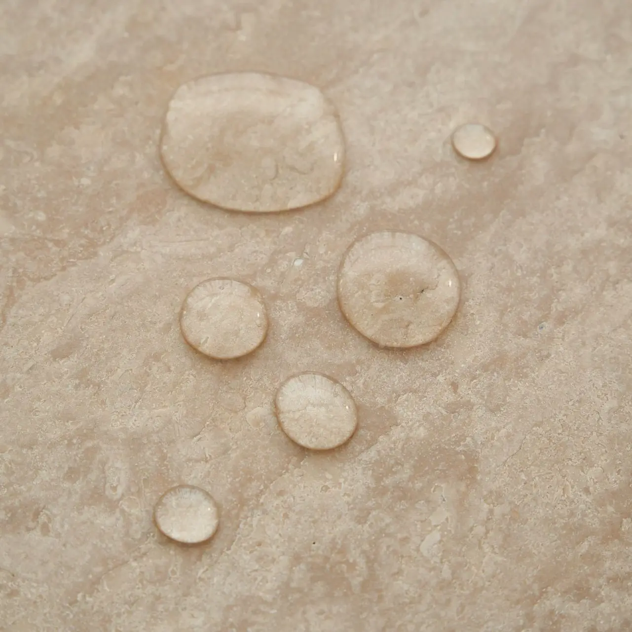 Two surface finishes are available for the travertine tabletop:The first is a stain-resistant coating finish, which yields a matte, smooth surface. It preserves the natural texture of travertine to the greatest extent while providing protection against stains and color penetration. Note: The stain-resistant coating requires regular maintenance.The second is a glazed sealant finish, which delivers a glossy, sleek surface. It boasts stronger stain resistance and allows for easy daily cleaning and maintenance.