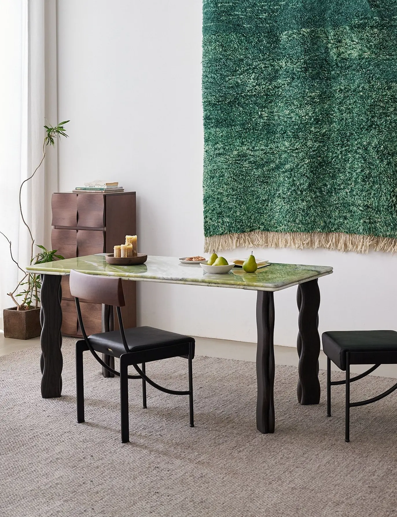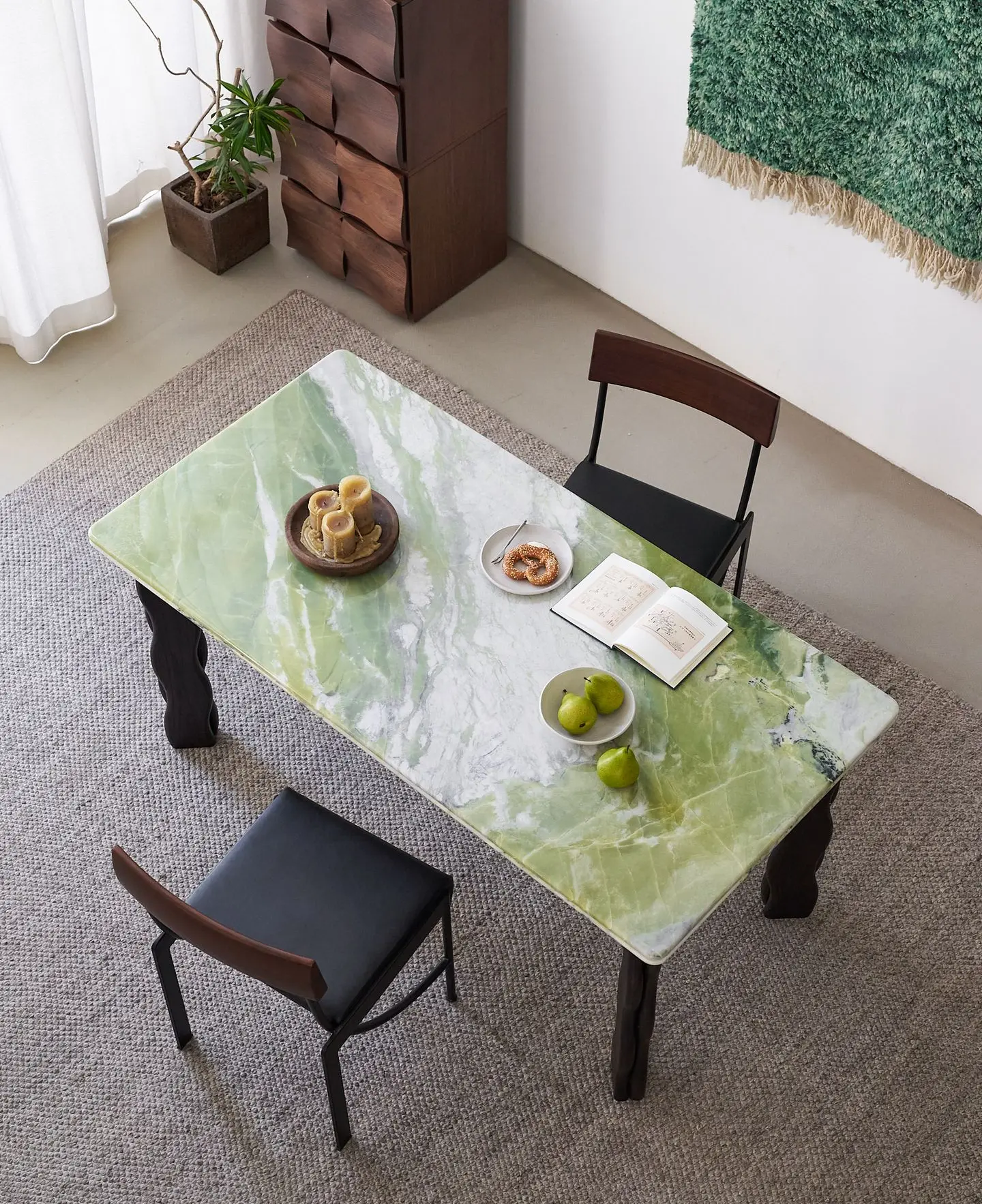 A variety of natural stone tabletop options are available for the Banlan Dining Table. The natural textures of the stone paired with the warm solid wood legs create a stylish and elegant visual experience through the interplay of contrasting materials.