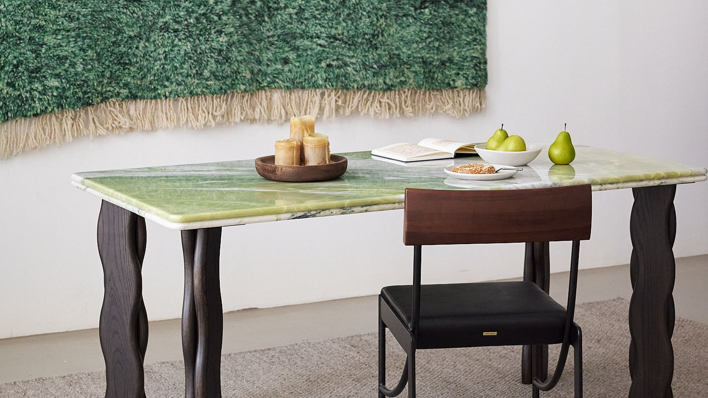 斑斓长桌有多种天然石材面可供选择,自然肌理石材搭配温润实木腿,材质间碰撞出时尚、优雅的视觉感受。