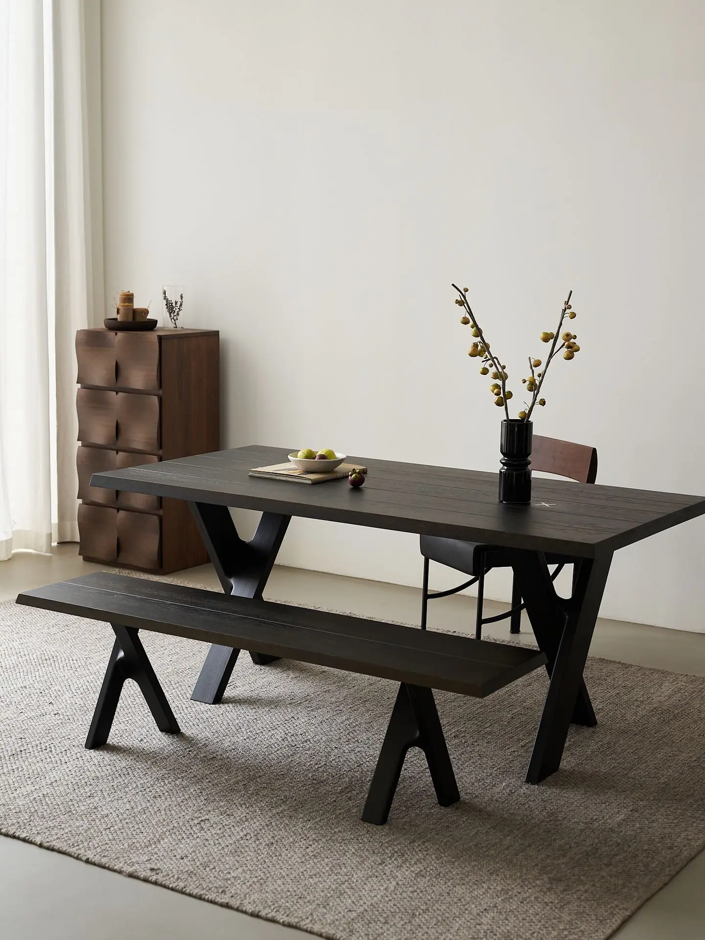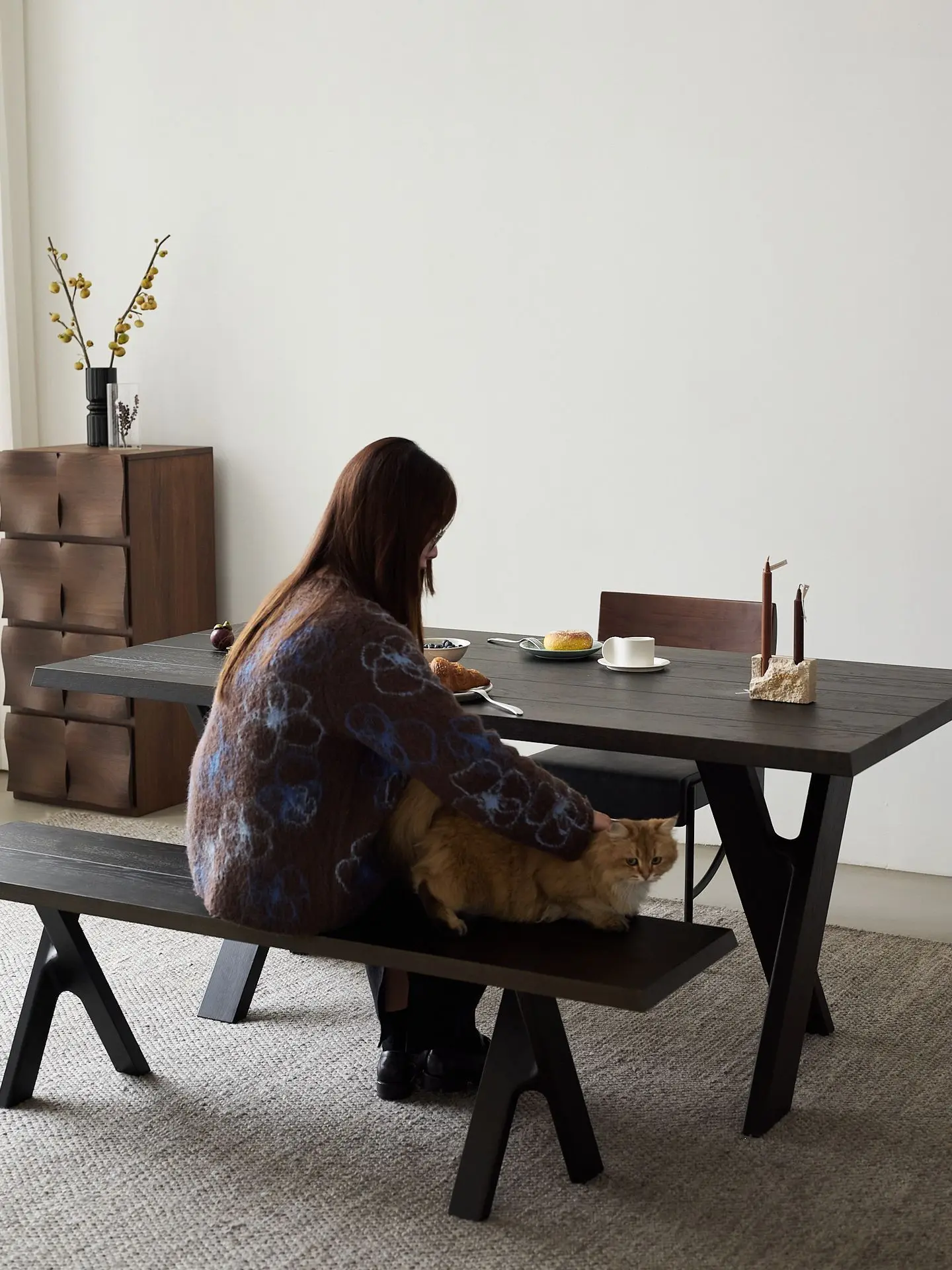 The all-solid-wood Xuxing Table embraces the natural warmth of solid wood in its overall design, boasting a sleek silhouette with sophisticated design flair. It pairs effortlessly with chairs of varying styles and integrates seamlessly into spaces of diverse aesthetics..Durable and long-lasting, this solid wood table bears the gentle marks of time as years pass, exuding a warm, refined patina that only comes with the grace of aging.