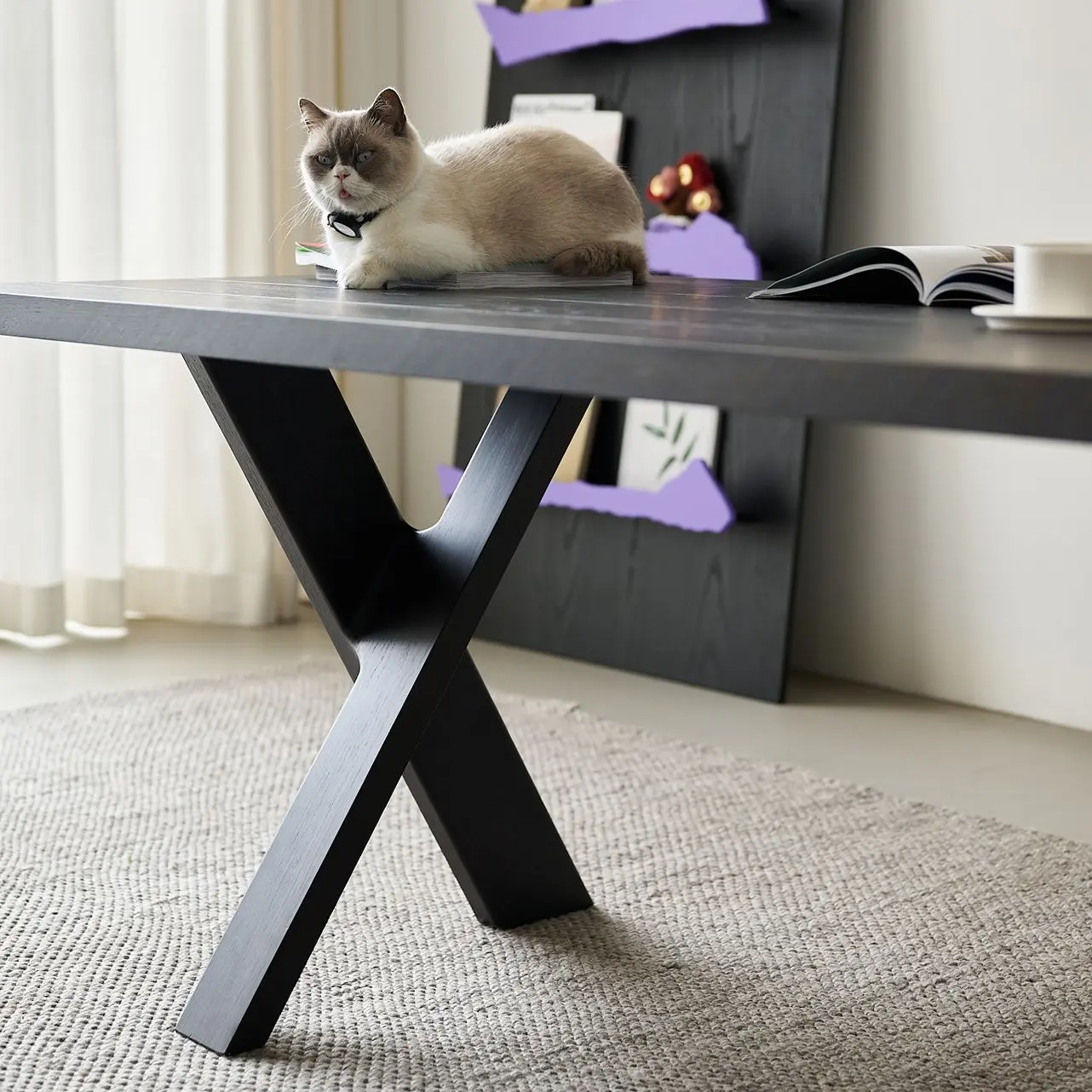 徐行长桌桌腿为实木材质,桌腿交错结构,交错处实木顺滑接合,让桌腿视觉上更为细腻温润,两侧桌腿为不对称设计,具有行走般的动态美感。