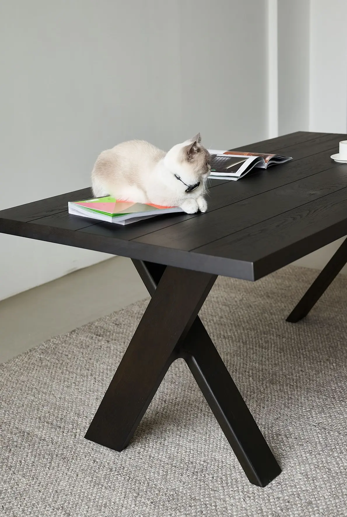 The all-solid-wood Xuxing  Table takes its leg design inspiration from the posture of walking. With smoothly integrated, mirror-interlaced legs, it boasts an elegant, dynamic visual appeal—like gliding forward with effortless ease, exuding poise and sophistication.More than a piece of furniture, the Xuxing Table embodies a life attitude of relaxation, composure and courageous progress, infusing any living space with a laid-back sense of ease.