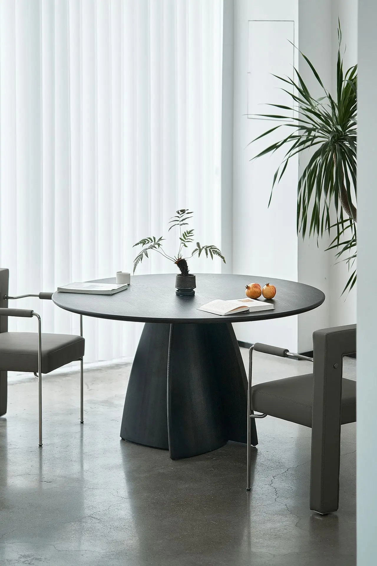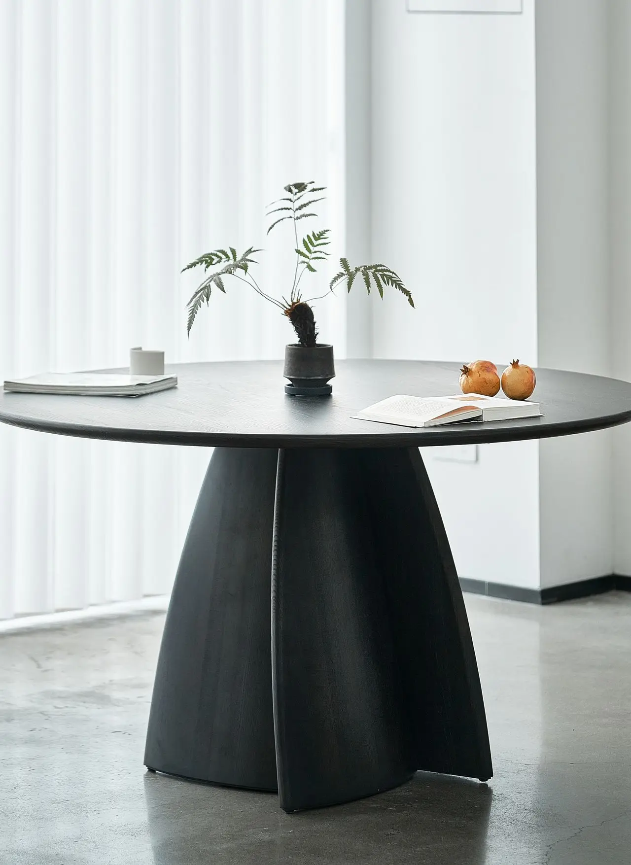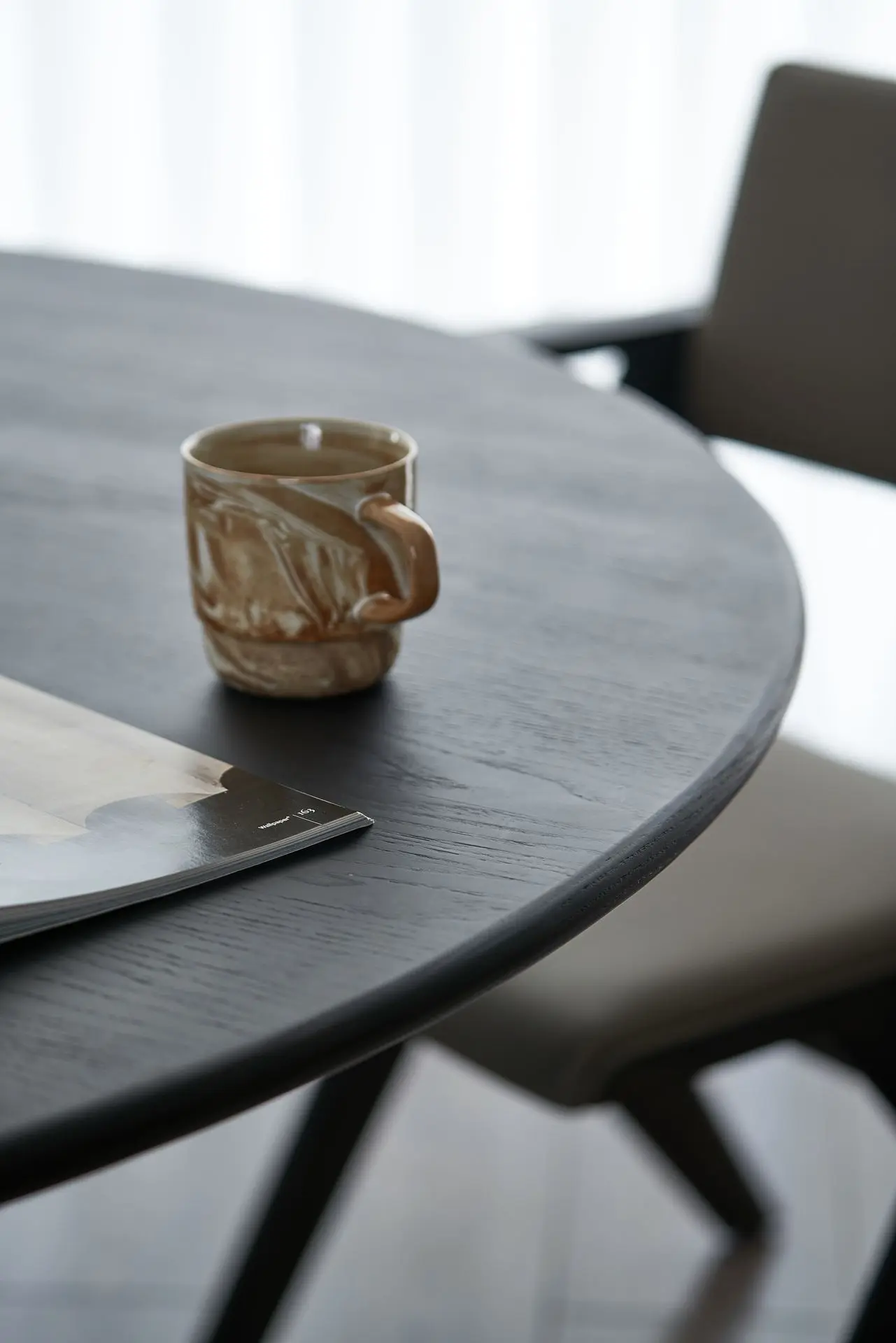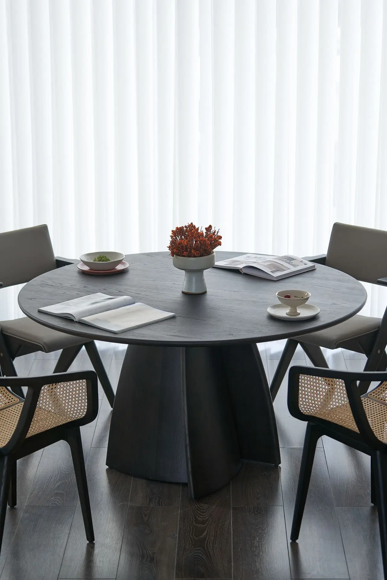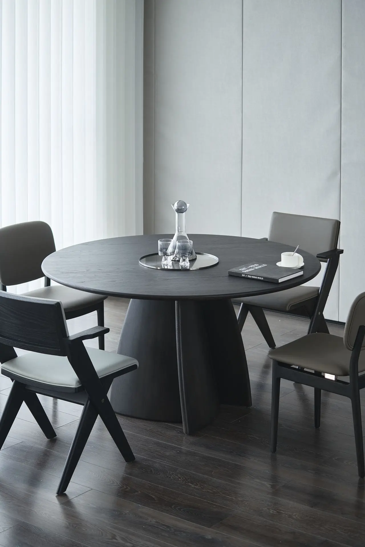 The legs of the Linglong Large Round Table feature a minimalist yet highly distinctive design. It pairs seamlessly with chairs of varying styles and integrates effortlessly into diverse interior aesthetics. Crafted from solid wood, this table is built to last—over time, it gently accumulates the marks of daily use, developing a warm, patinated texture that reflects the quiet beauty of passing years.