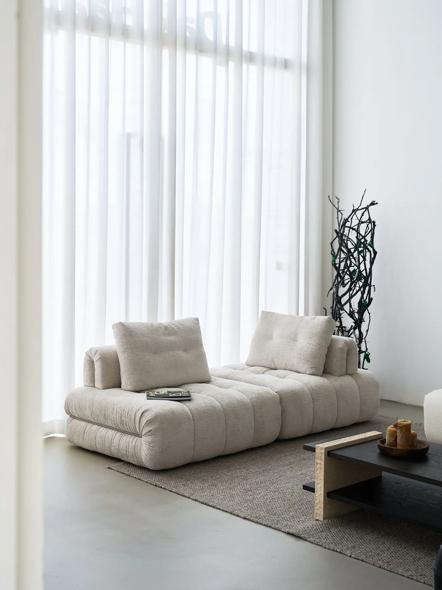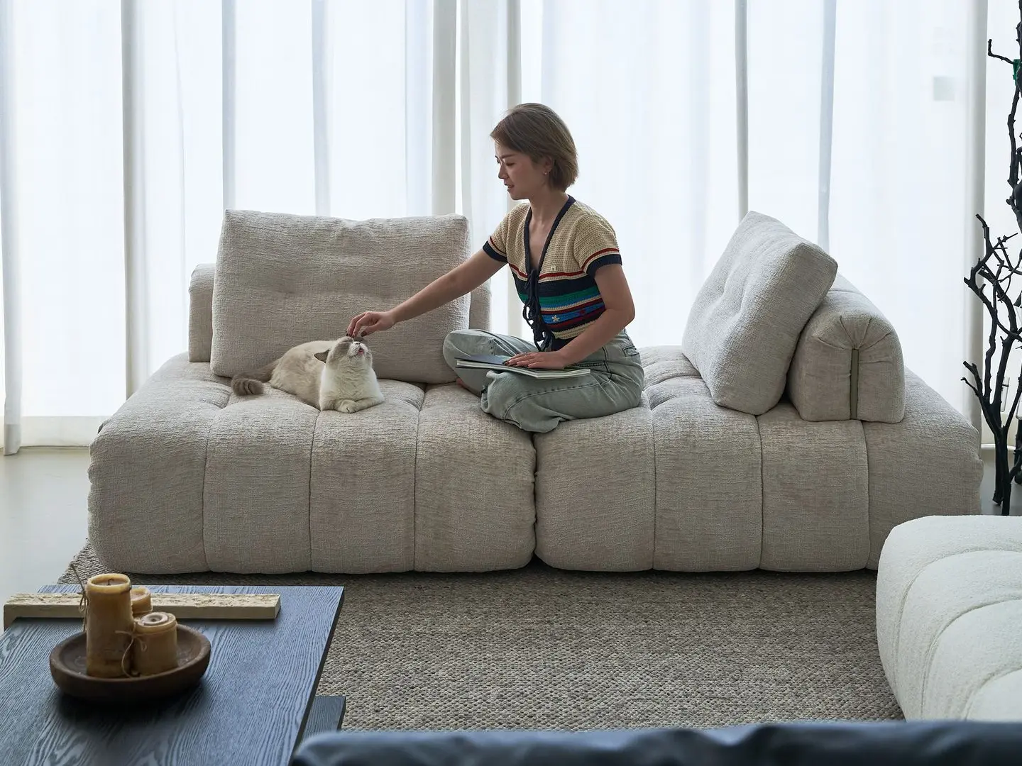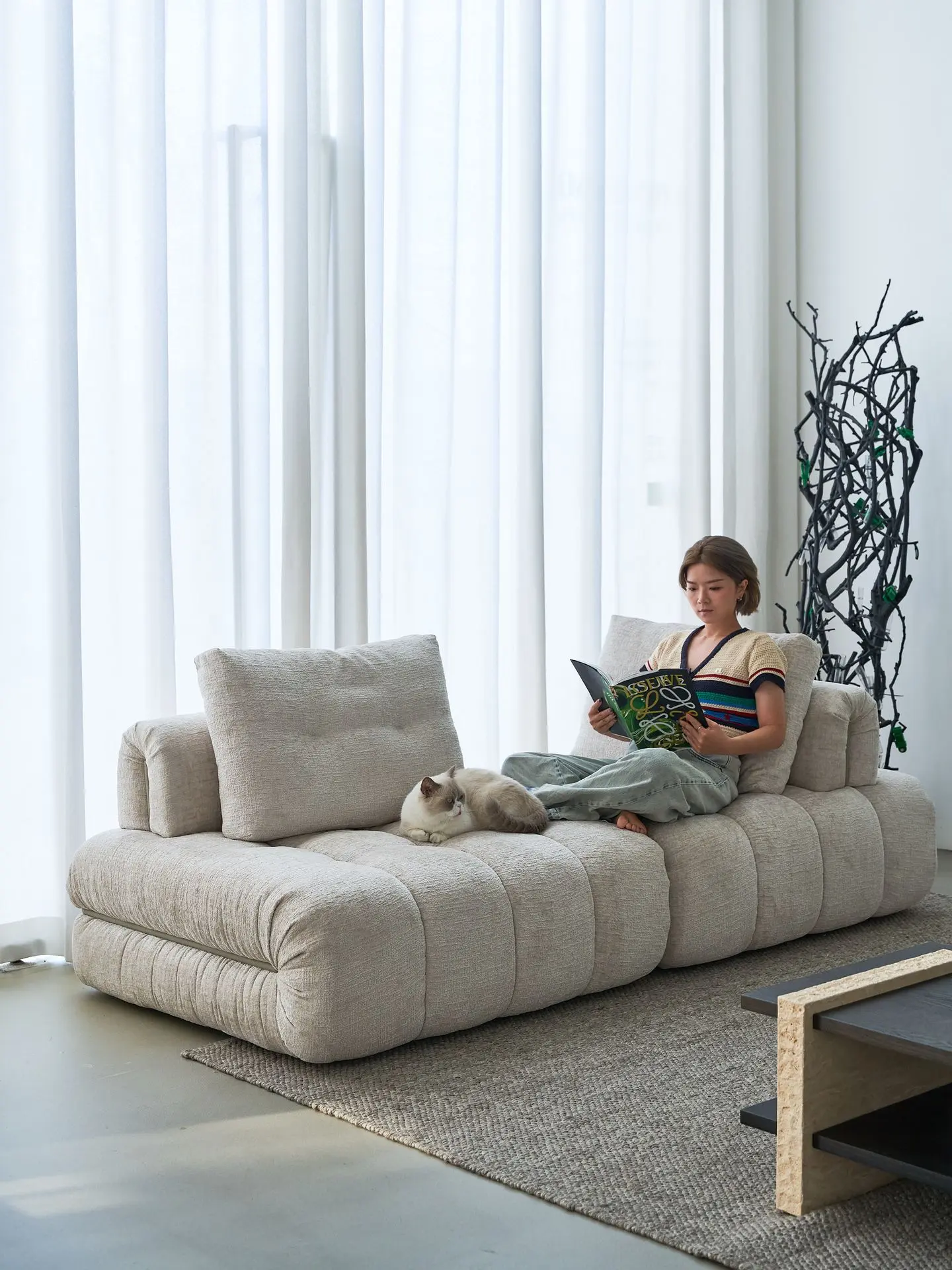 The 1.05m cube modules are customizable and freely combinable. Horizontal as a sofa, vertical as a daybed—easily unlock diverse lazy vibes.