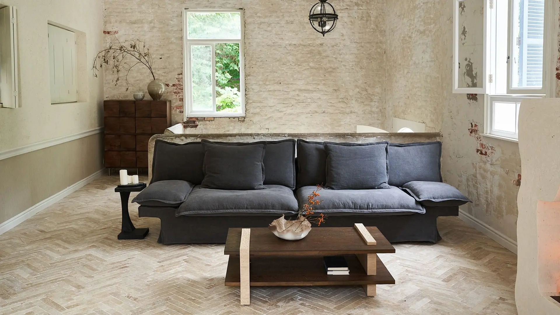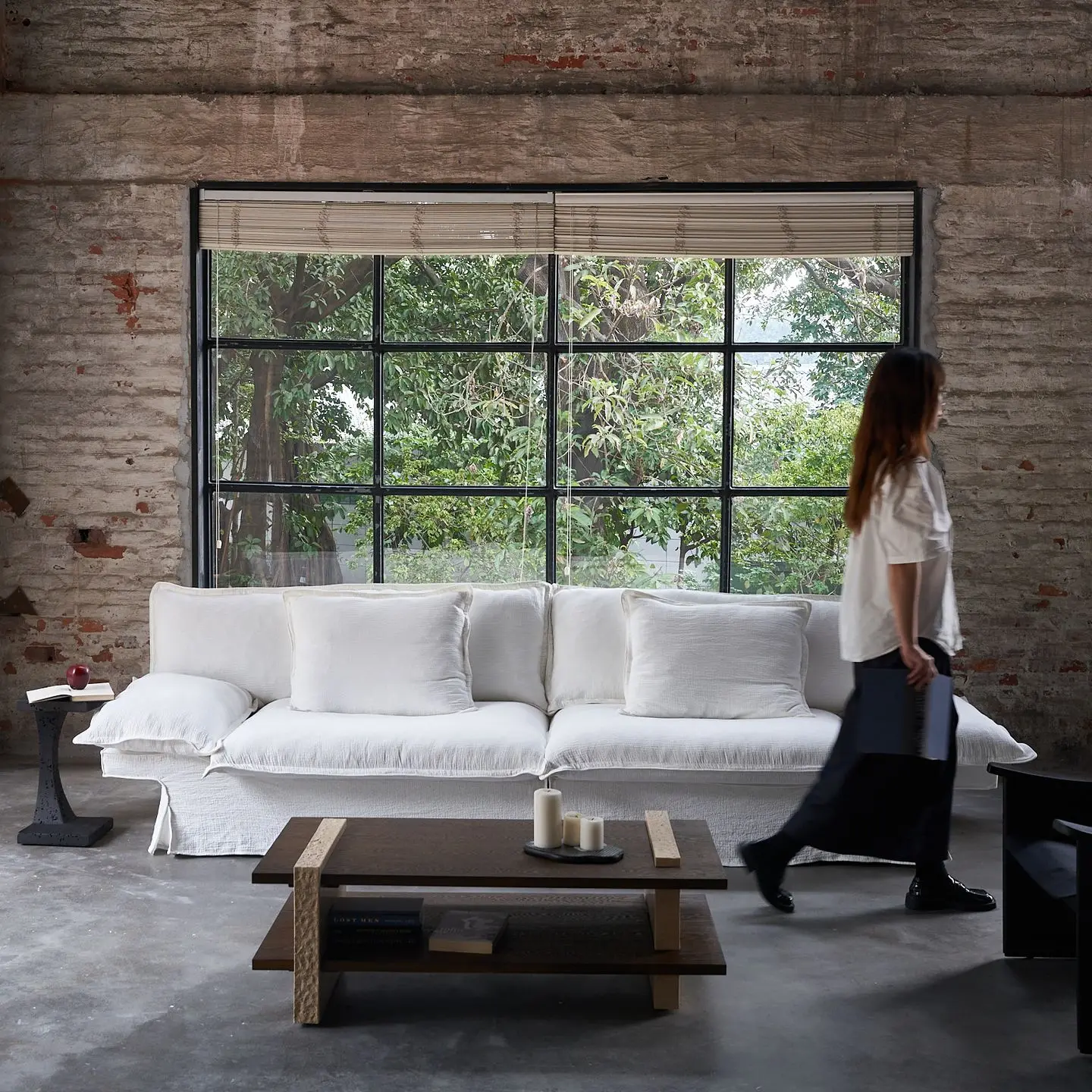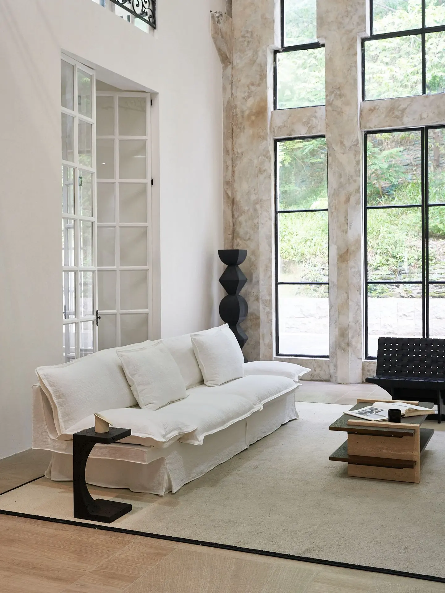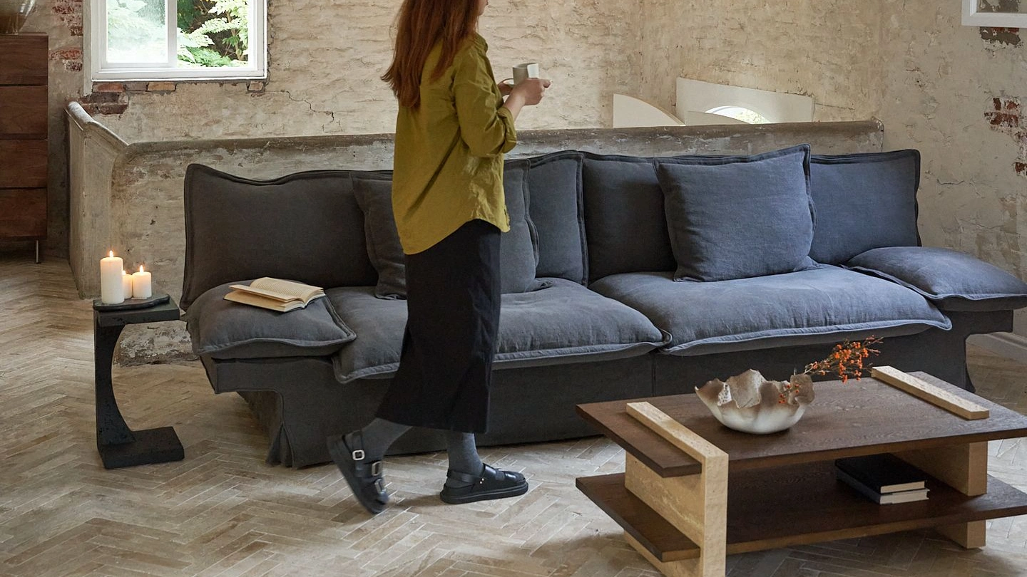 the Yi Fang Sofa emerges as a pavilion-inspired retreat by a tranquil lake—ethereal in form yet meticulously crafted.