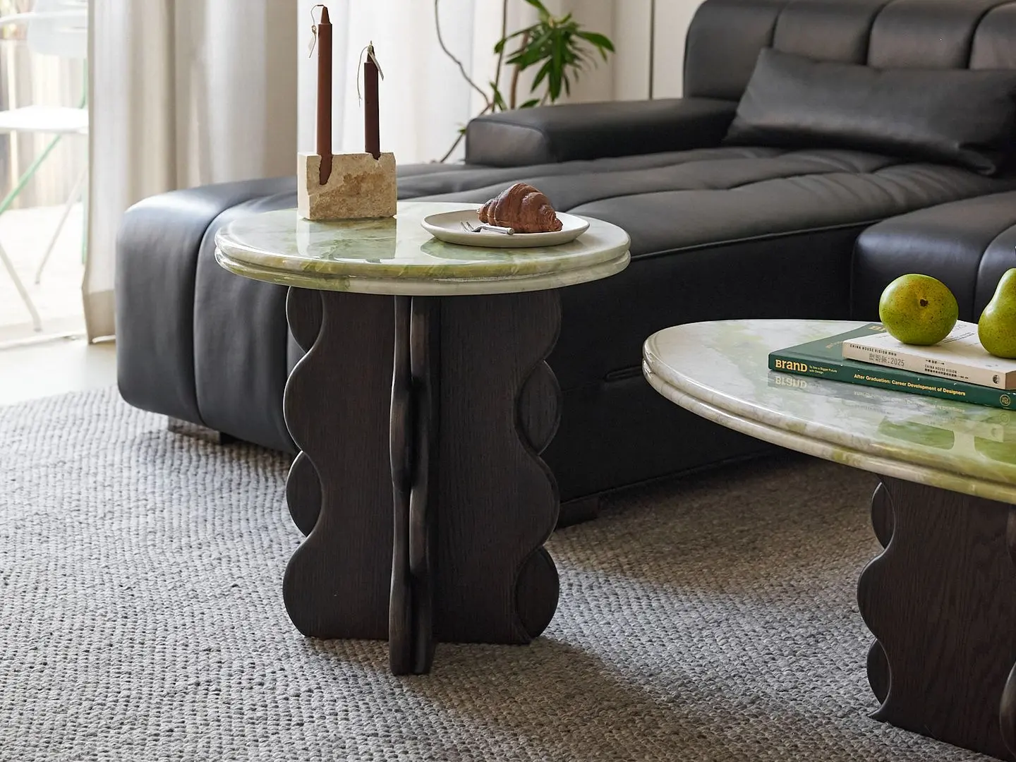 斑斓边几有多种天然石材面可供选择,自然肌理石材搭配温润实木腿,材质间碰撞出时尚、优雅的视觉感受。