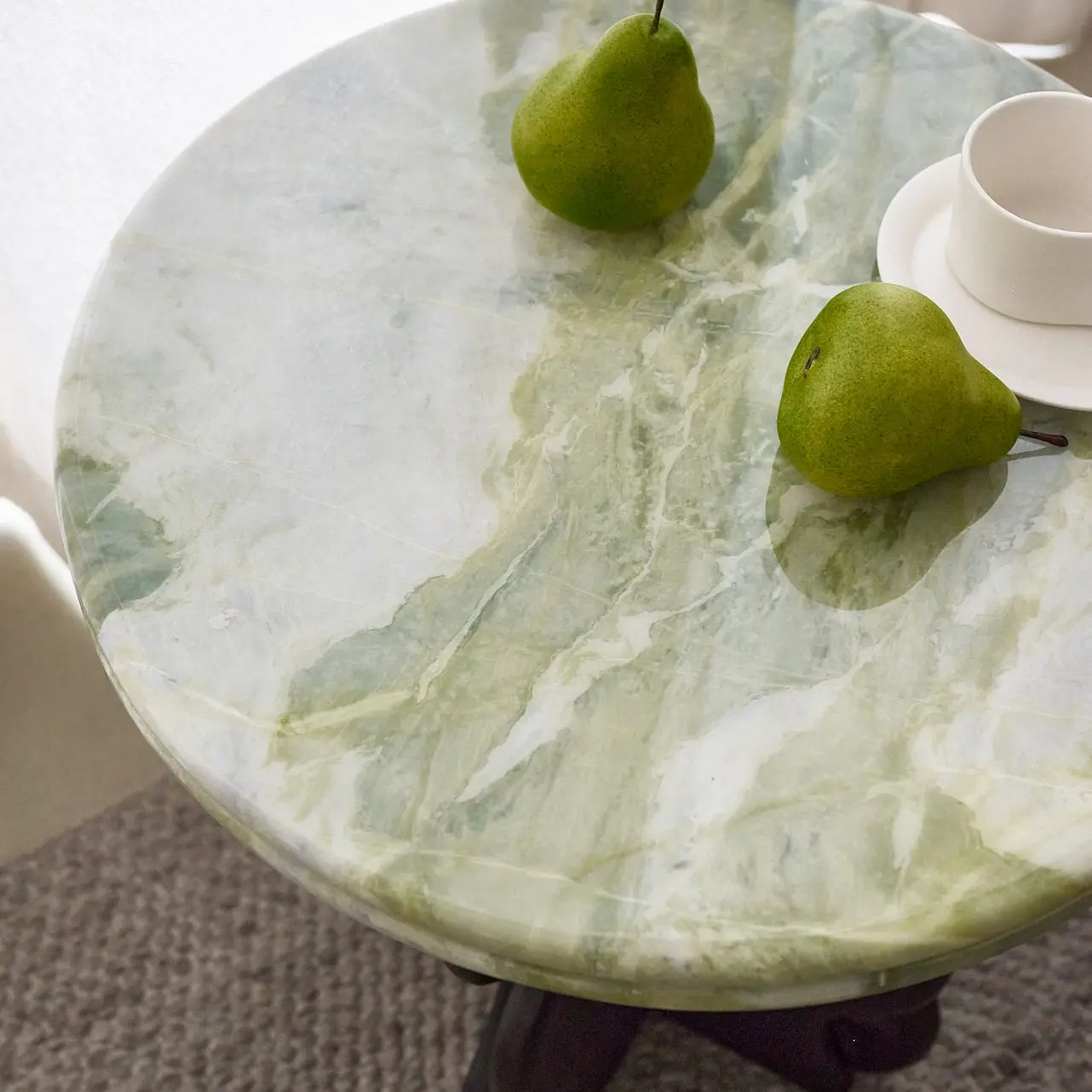 春涧绿石材色泽清新淡雅,宛如山涧初融的冰绿水色,深浅交织的冰透绿,错落有致,凝聚着岁月沉淀的宁静和深邃。每块天然石材原料都拥有独特的自然纹理,使每张茶几都拥有独特的艺术魅力,为空间注入一份清新而温馨的氛围。